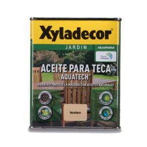 Xyladecor® Aceite para Teca Aquatech es una mezcla de aceites naturales y resinas al agua elegidas especialmente para nutrir y enriquecer la madera. Reemplaza los nutrientes perdidos por la acción de los