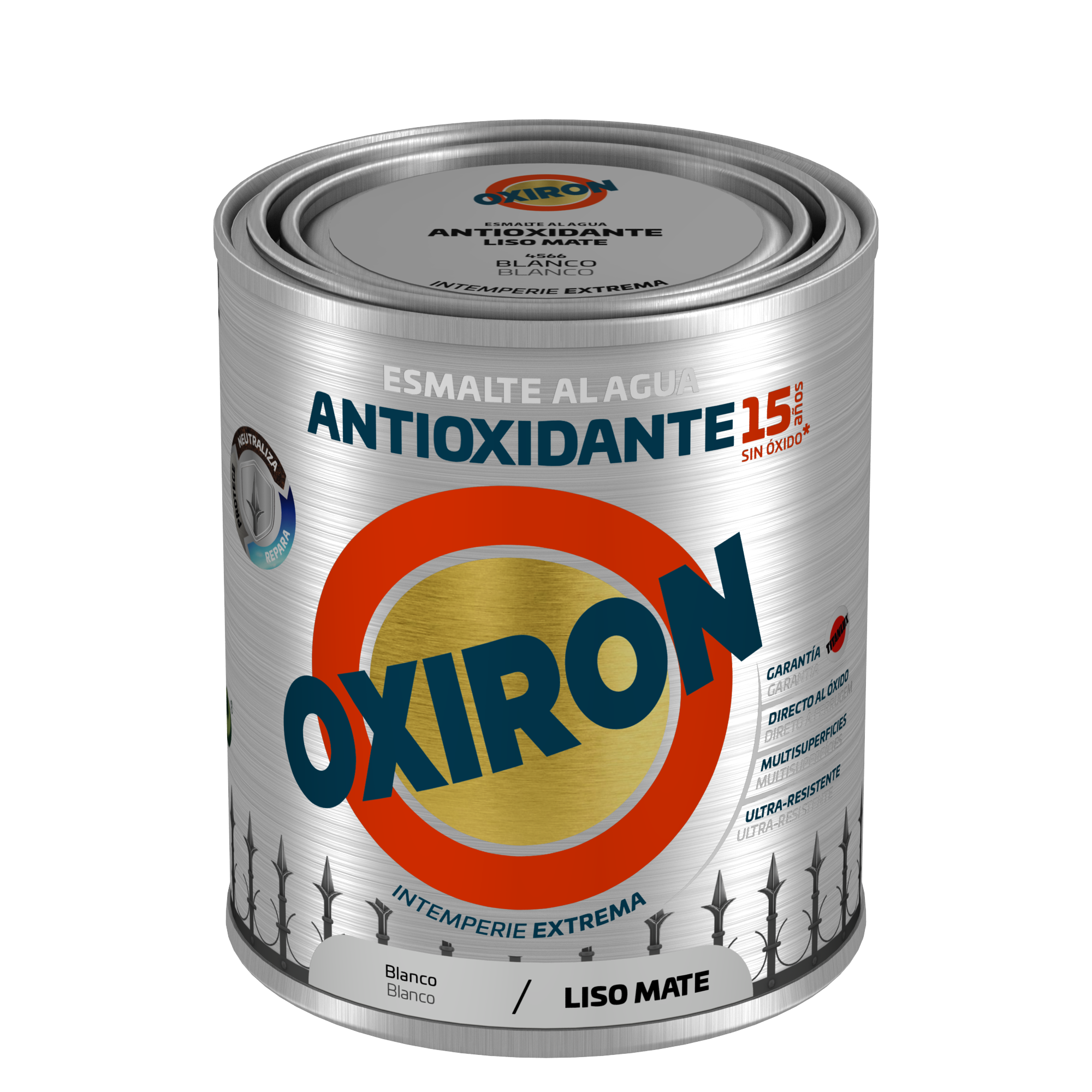 Esmalte antioxidante multiadherente mate al agua de secado rápido y aplicación directa sobre acero y óxido, aluminio y galvanizado sin necesidad de imprimación previa. Proporciona una excelente resistencia a la intemperie de hasta 15 años y un acabado mate de gran adherencia, flexibilidad y resistencia a los golpes. Con conservante de film frente a hongos y algas.