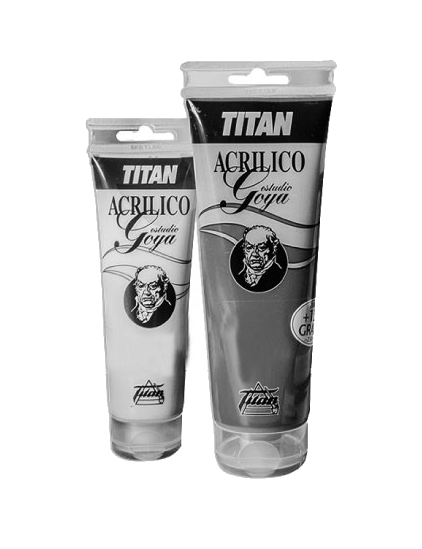 Los colores TITÁN Acrílico Goya estudio, están elaborados con tecnología propia, a base de resinas acrílicas, aditivos y pigmentos seleccionados de entre los de mayor pureza, intensidad y resistencia a la luz. Se diluyen con agua y son de secado rápido. Generalmente, los colores acrílicos se utilizan para pintar cuadros sobre lienzos de lino, algodón y otros, pero también pueden aplicarse sobre cualquier superficie porosa previamente preparada y exenta de grasa (madera, resina, etc.).