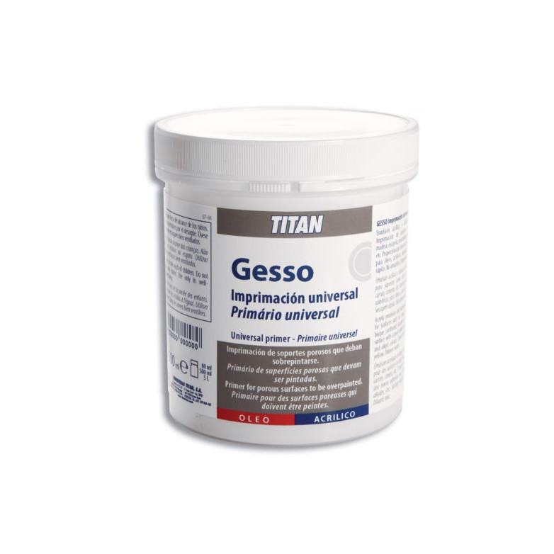 Una vez preparadas con GESSO IMPRIMACION UNIVERSAL TITAN, estas superficies pueden sobrepintarse con cualquier pintura de artistas (acrílicas, óleo, alquídicas, etc.).